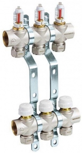 Комплект призначений для монтажу в системах водяної теплої підлоги. Він складається з універсального колектора (латунний корпус), витратомірів для кожного контуру, підключення через євроконуси 16×2,0 мм, а також настінного кріплення, яке спрощує монтаж — фіксація на стіні чи в монтажній ніші.