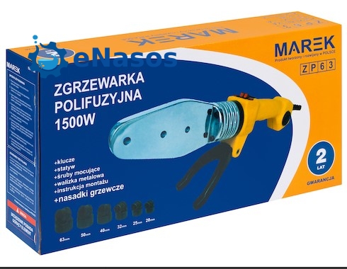 Професійний паяльник для поліпропіленових труб Marek ZP-63 призначений для зварювання поліпропіленових труб з фітингами діаметром від 20 до 63мм (насадки: 20 мм, 25 мм, 32 мм, 40 мм, 50 мм, 63 мм). Має плоску мечевидну форму нагрівача з нержавіючої сталі з можливістю установки на ньому одночасно двох зварювальних насадок.