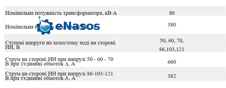 Основні технічні характеристики станції прогріву бетону КТПОБ-80