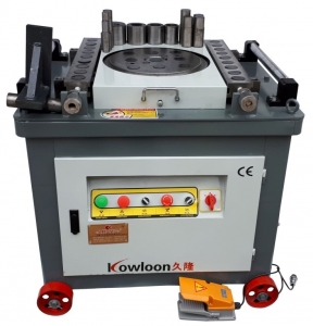 Верстат для гнуття арматури GW-42B має потужність 3 кВт, швидкість обертання робочого диска 7-10 обертів на хвилину та здатний гнути гладку арматуру діаметром від 4 до 40 мм і ребристу діаметром від 4 до 28 мм.