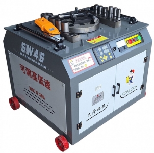 Верстат для гнуття арматури GW-46 має потужність 4 кВт, швидкість обертання робочого диска 5-10 обертів на хвилину та здатний гнути гладку арматуру діаметром від 4 до 40 мм і ребристу діаметром від 4 до 32 мм.